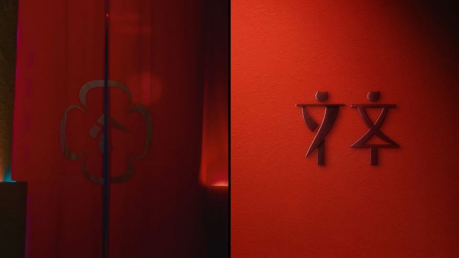 That close collaboration extended to materials and spatial design. From the petal-like forms in signage to the soft glow of menu lighting, each touchpoint reflects the venue's central idea: two experiences that only come alive after dark. Even the uniforms and event visuals follow suit, blending elegance with edginess and ritual with revelry.