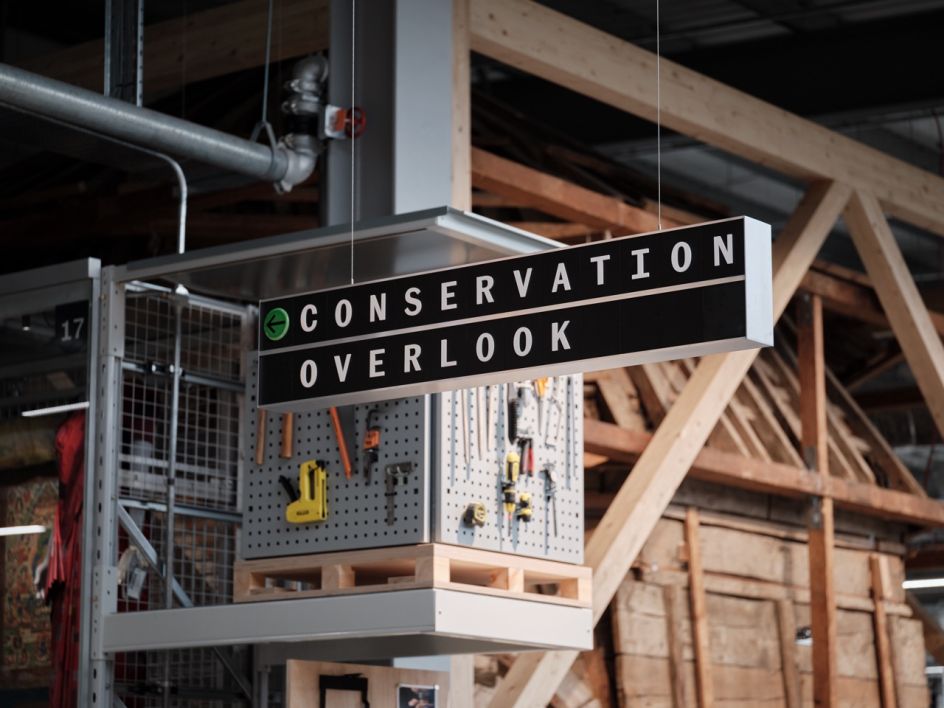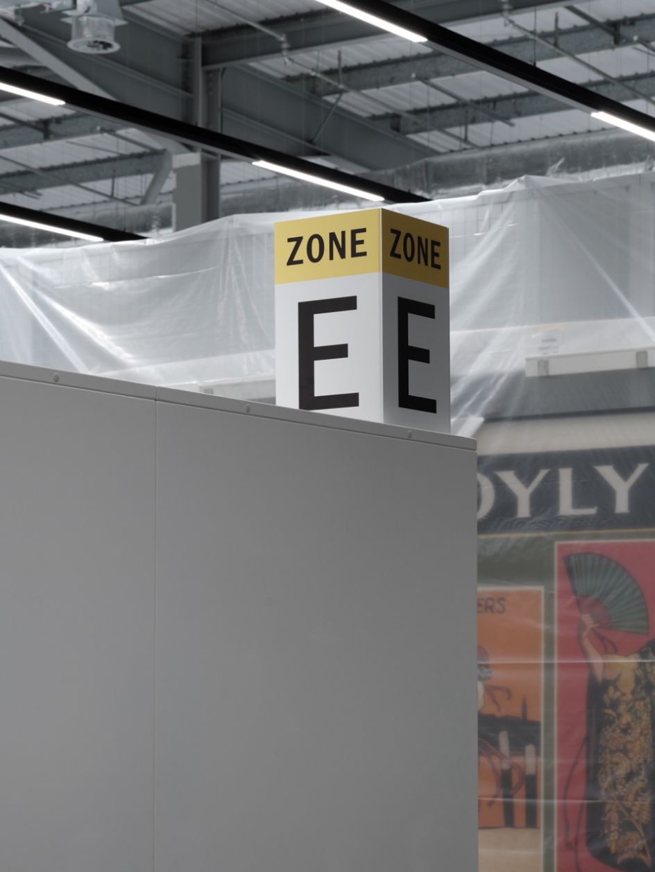 Fieldwork Facility's wayfinding had to account for this, crafting a bespoke Health & Safety code system and signage for areas typically off-limits to visitors. Even the paddles used in the Order an Object experience double up as safety markers, ensuring staff know when visitors are present in shared spaces.