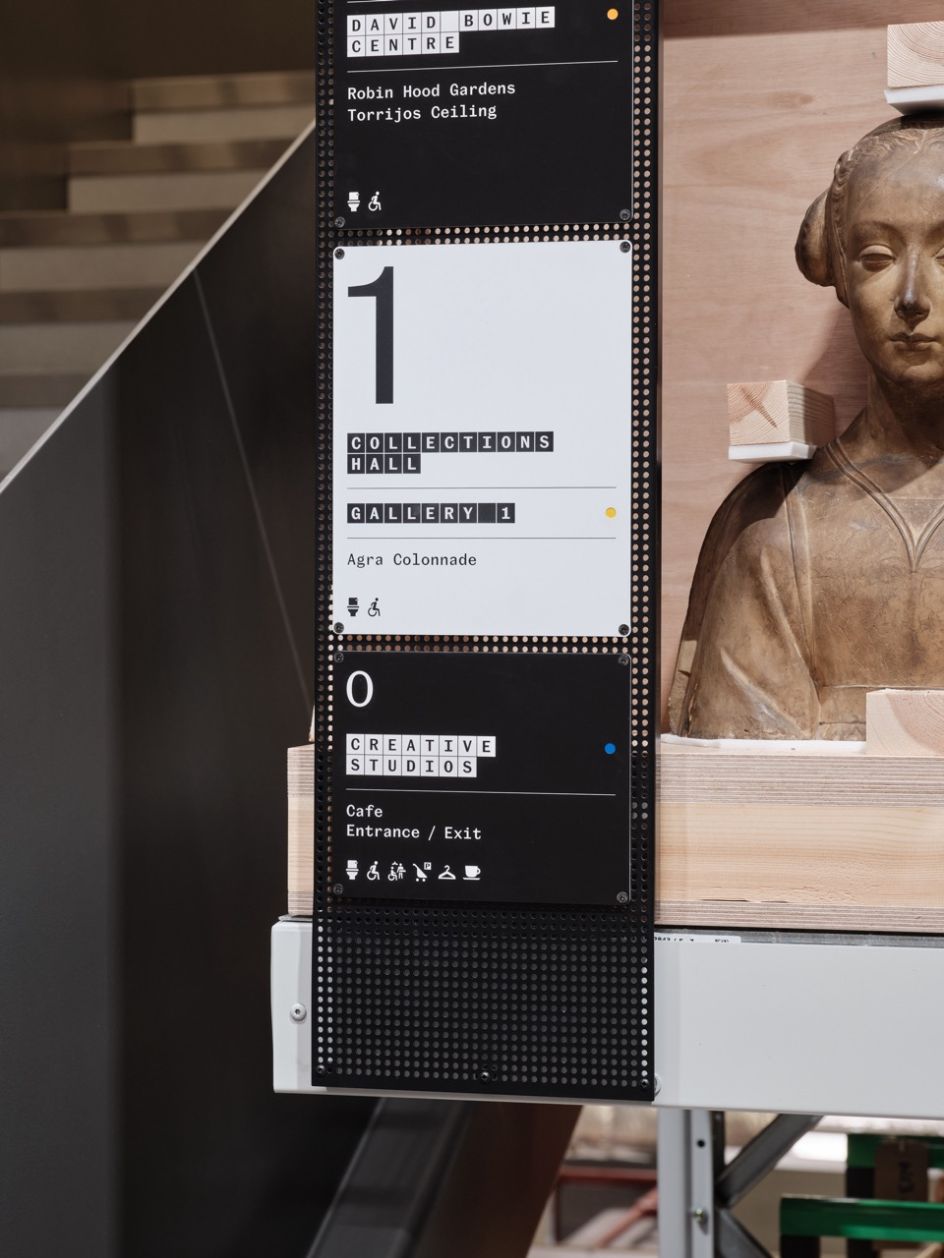 The wayfinding isn't just a slick user experience – it's also a sustainability statement. In line with the V&A's circular design goals, Fieldwork Facility approached the signage and interpretation systems with modularity, longevity and recovery in mind. Every component has been designed for disassembly and reuse.