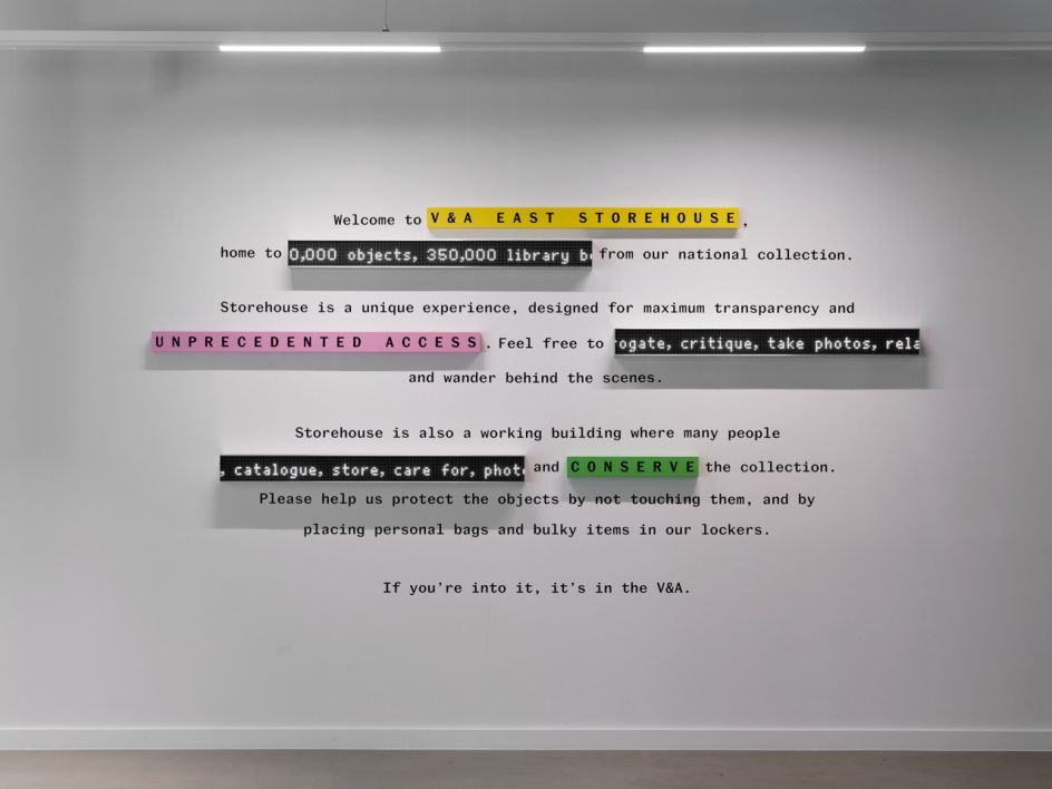The studio was tasked with designing all the wayfinding and interpretation for V&A East Storehouse – a project that posed an unusual challenge. How do you guide visitors through a space that doesn't behave like a museum at all?
