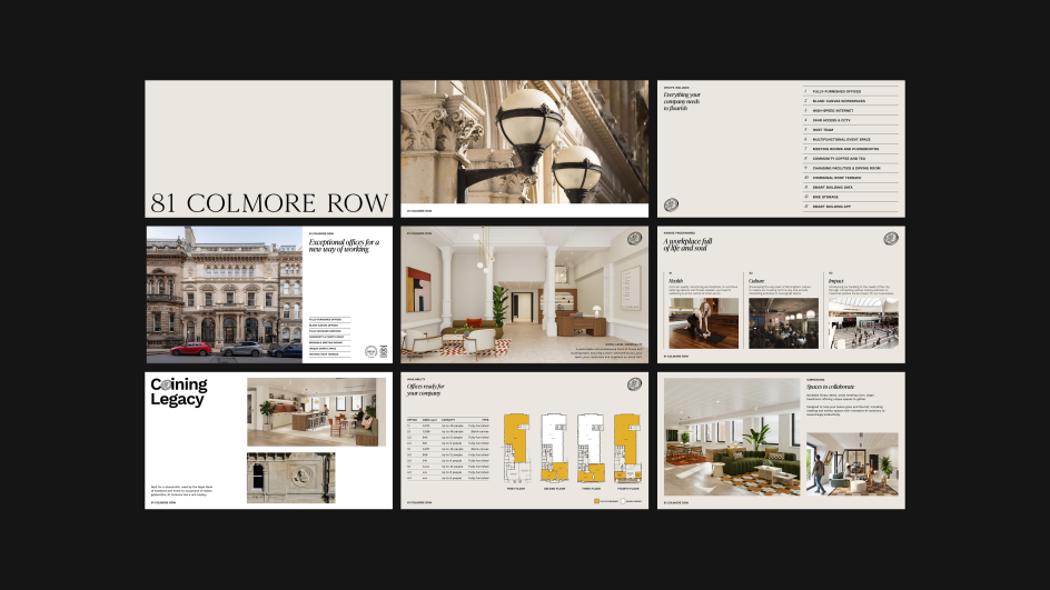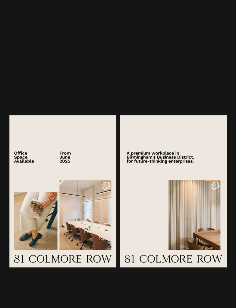81 Colmore Row is a freshly reimagined heritage building by workspace developer Kinrise, sitting proudly at the intersection of commerce and creativity. To bring its brand to life, Kinrise enlisted Birmingham-born studio Unfound, whose identity work subtly balances modern elegance with the grit and graft the city is known for.